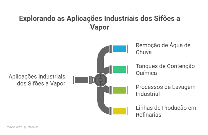 Os sifões a vapor são amplamente utilizados para drenagem de líquidos em locais de difícil acesso, ambientes hostis ou contaminados, onde a manutenção de bombas elétricas seria inviável ou arriscada. Um exemplo comum é a remoção de água de chuva acumulada em poços contaminados, como ilustrado na imagem mencionada do lote de sifões de 1” em bronze.